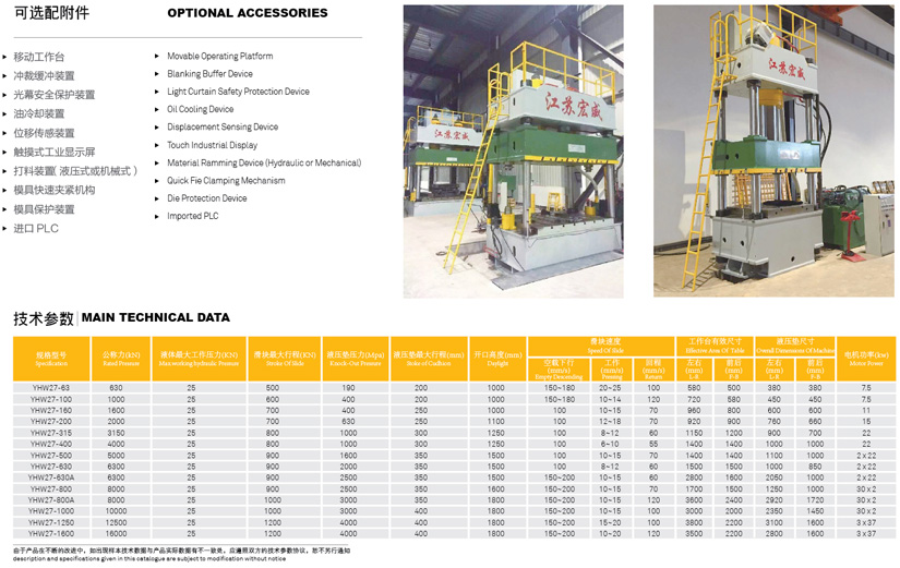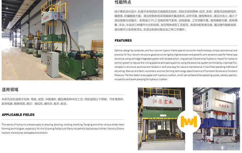 YHW27-1250T四柱單動(dòng)式薄板拉伸液壓機(jī)