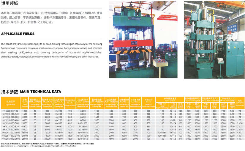 YHW28系列雙動(dòng)式薄板拉伸液壓機(jī)